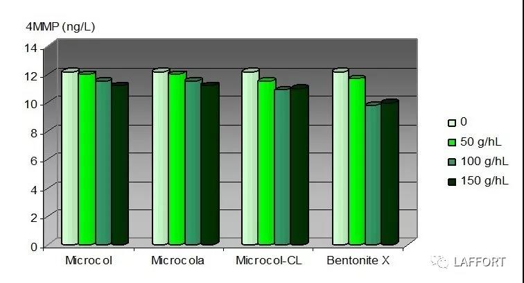 通過上圖我們可以發(fā)現(xiàn)使用膨潤土產(chǎn)品可以增加葡萄酒的光亮度,其中使用Microcol ALPHA產(chǎn)品的效果最明顯